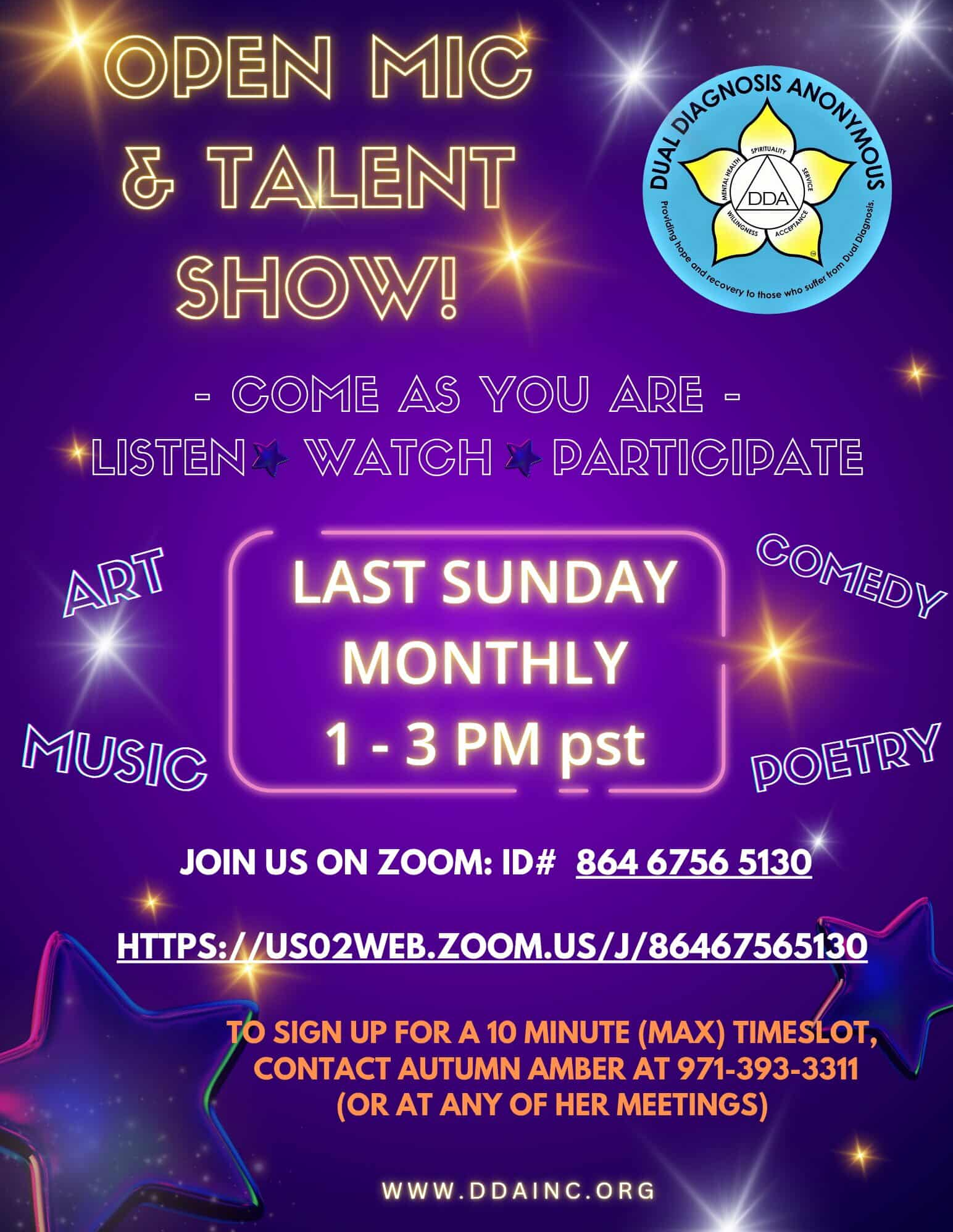 DDA Open Mic and Talent Show is open to all! Please join us and show your creative side!!!