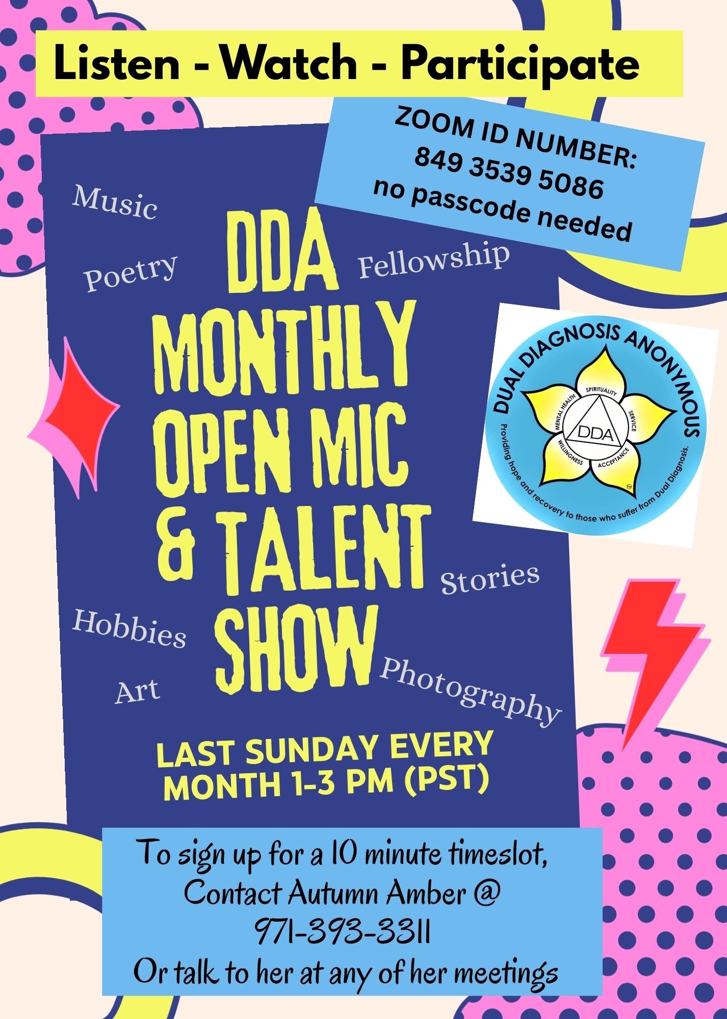 DDA Open Mic and Talent Show is open to all! Please join us and show your creative side!!!